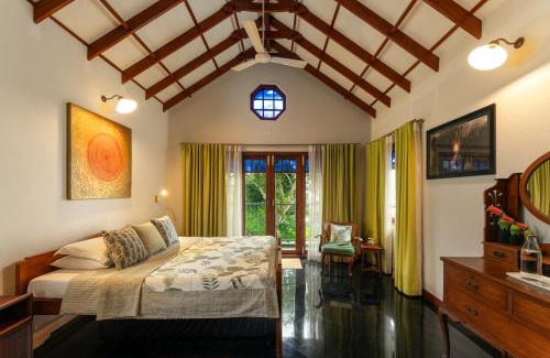Featuring a garden, Hibiscus Earth Private Pool Villa A CGH Earth SAHA Experience offers accommodations in Kumarakom. This property offers access to a terrace, free private parking, and free Wifi. The villa features an outdoor swimming pool and a shared kitchen. This villa includes 3 bedrooms, a living room and a flat-screen TV, an equipped kitchen with a dining area, and 3 bathrooms with a bath. For added privacy, the accommodation features a private entrance. Guests can also relax in the shared lounge area. Kochi Biennale is 28 miles from the villa, while Cochin Shipyard is 26 miles from the property. Cochin International Airport is 43 miles away.