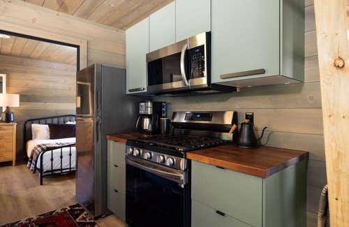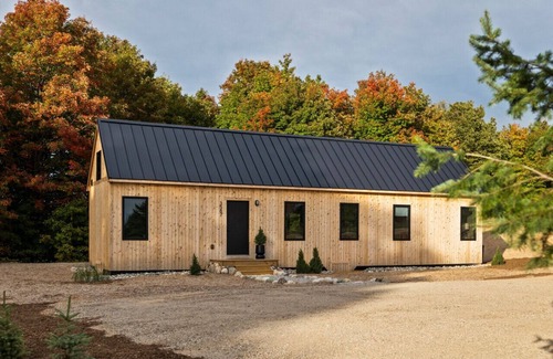 Welcome to our brand new, modern, 2-bed, 2-bath cabin! Perfect for a couples get away, this stylish retreat offers all the comforts along with rustic charm and can be rented with an identical cabin next door. Enjoy serene bedrooms and small sleeping lofts featuring soft linens and plush pillows, a fully equipped kitchen, cozy living area, large covered porch, and a fire pit. Minutes from downtown Petoskey and all it has to offer, but in a peaceful and quiet setting! Book today!