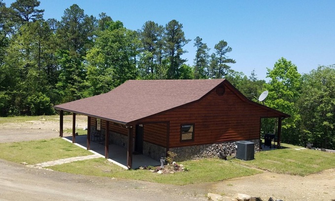 This Brand New 2 Bedroom/ 1 Bath Cabin is nestled on 5 acres and is located in the prestigious Legacy Trails Cabin Community in the Kiamichi Mountains. Come enjoy a stay and relax inside this brand new fully furnished beautiful Cabin. The bedrooms are each equipped with Queen size beautiful handmade Aspen log beds and nightstands. The kitchen and bath have Granite Counter tops and the kitchen comes fully furnished with everything one might need! The Stone Kitchen bar has seating for 6. The living area is outstanding with a rock gas fireplace, leather couch (with sleeper) and sofa. This cabin is beautifully decorated and roomy for all. Come sit in a rocking chair on the front or back porches that are perfect for wildlife viewing! There is a deer feeder on the property that draws in plenty of wildlife! Step down to the firepit, nestled on the edge of the woods and enjoy a star filled night with friends and family roasting smores! If your looking for a place to enjoy the outdoors with family and friends book this cabin today! Access to the Upper Mountain for river is only a short walk or drive away. Kayaks are available on a first come basis for all Legacy Trails Guests to enjoy! We hope to see you soon at Hidden Bliss!