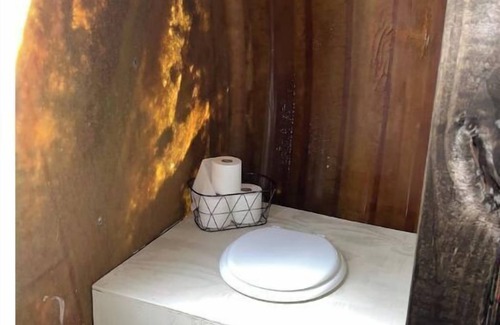 Enjoy the sounds of nature and our farm when you stay in this unique setting located on 30 acres. This 20’ long round bunker is half buried in ground and has been converted into an off grid experience. With a composting toilet, power station for small items such as cell phones, rechargeable lanterns and a potable 5 gallon sink system you’ll be comfortable in this little getaway. Queen size bed for two and a thick foam mat for an extra guest allows this unit to sleep three. Comes with firewood!
