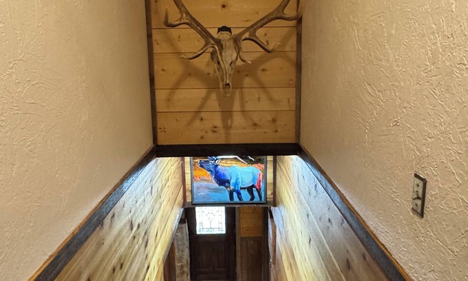 Welcome to our Cabin nestled into the hills of the Osage Nation. Here you will find everything you need to kick back and relax on your next vacation. The cabin sits in the middle of an oak forest, where the views are nothing short of amazing. Wake up in the morning and sit on the front porch and listen to nature come alive, in the spring you might be lucky and hear the turkeys calling of their roost trees! After a day of playing cornhole, gather around our provided fire pit and make some more memories with your friends and family. There are several attractions in the area. Spend the day exploring Hulah lake, which is merely a stones throw away from the cabin. There are numerous hunting destinations close by including Hulah Wildlife Management Area, Rock Creek Wildlife Management area, and the Western Wall Management area. Just a short 30 minutes drive to the south is The famous Pioneer Woman’s Mercantile by Ree Drummond!! Don’t feel like cooking? Head 15 minutes north to Bucks BBQ where you will enjoy one of the best steaks in the country. Our recently remodeled 6 bedrooms/2 bathrooms cabin includes 8 queen beds and 1 king size bed. The kitchen will come fully equipped, and there will also be a pellet grill and charcoal grill at your disposal. So whether it’s a Weekend out with gals, a hunting trip, or a simple family outing, we would love for you to come enjoy our cabin in the woods for your next lodging destination.