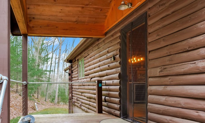 Tucked away, this secluded cabin offers the best of both worlds—serenity and convenience. Whether you're sipping coffee on the large screened-in porch, soaking in the hot tub under the stars, or gathering around the fire pit for s’mores, every moment here is designed for relaxation. Inside, you’ll find heated bathroom floors for cozy comfort, a fully equipped kitchen, and stylish modern touches throughout.