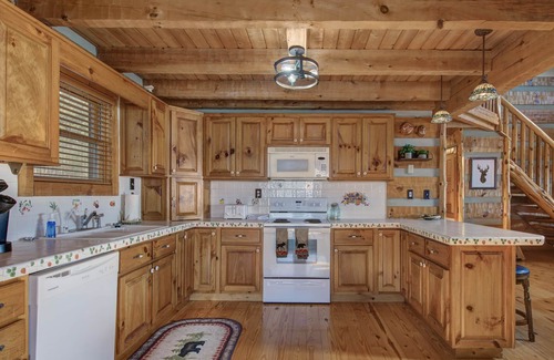 Hidden Cove is a true luxury log home with real logs used on the interior structure for railings, steps & accent pieces. Every inch of this home says ” Luxury ” with high end furniture, knotty pine floors, half log cedar steps and railings, & cedar furniture. The cabinets are pine. Hidden Cove Log home sits on a private area for lots of privacy. You will not find a home situated on Douglas Lake like this with main channel water which means you will have year round water and those amazing Smoky Mountain views.