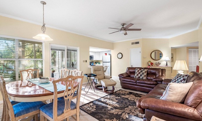 This resort has something for everyone in the family. Whether they love the beach, tennis, or walking trails, there something here for them. The beach is a short 6 minute walk down the manicured walking trail or there is limited parking available closer to the beach at the end of the resort. The pool is only steps from this cozy beach cottage