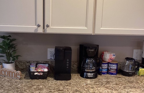 Hidden Gem offers guests with a clean and private stay. The property includes four bedrooms, a modern kitchen, two full bathrooms, and a separate private patio off of the main bedroom. Off of the kitchen you can find a sliding door leading to a large back deck with sitting where you can find a large yard thats completely fenced in. A green lawn. Through the kitchen, down three steps, is our bonus room with a 65 inch tv families can gather for entertainment, movies, games and snacks! And relax on a recliner couch and a recliner chair.This property includes four bedrooms: In the primary bedroom guests will find a queen sized bed with a dresser and a 55 inch tv a walk in closet and a full bathroom .The bedroom also includes a walkout private patio with seating. Also there is a comfortable chair in the room for guests to sit and relax. . The second bedroom includes a queen bed, 50 inch television, and a walk in closet and a dresser. The third bedroom also includes a queen bed, 50 inch television, and a spacious closet. The fourth bedroom, guests will find two twin beds, a 42 inch television, and a walk in closet. All of the bedroom televisions are equipped with fire-sticks for entertainments and Netflix. . In each bedroom, guests can find a dresser for storage space.each closet has hangers and night lights if needed all rooms in the house have ceiling fans. The modern, and fully equipped kitchen is stocked with appliances such as, a tea kettle, toaster,a blender, air fryer, drip coffee machine, and a k cup coffee machine, microwave dish washer and electric stove and oven. Guests can enjoy a meal at the 6 seat dining table with extra seating at the counter with two bar stools Guests have access to the full house. Two bathrooms, one located in the hallway, second located in the primary bedroom. The cozy living room comfortable couch and love seat which allows guests to sit down and enjoy a good book or watch a movie on the 55inch smart tv with Netflix also , guests can find a designated workspace. Off the kitchen, guests can find an entertainment room. Stocked with games for all ages, snacks, and a 65 inch smart television, a reclining sofa, and a recliner chair, perfect for family game night, kicking back to enjoy a football game, or just relaxing! Guests also have access to a washing machine and dryer. Hidden gem provides a fenced in back yard for the privacy of guests. For guests that enjoy the outdoors, the back deck offers seating. Guests also have the option to use the barbecue grill! The driveway on this property can fit up to three vehicles. Hidden Gem is a clean, warm and welcoming stay. Book your stay at this hidden gem!
