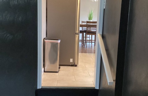 Guests should be aware that there are three stairs to go down in order to enter the entertainment room. We have a queen blow up bed for extra sleeping arrangements if guests need the blow up bed you must notify the host before your arrival. For the safety of the guests and the property we have a ring camera at the front and side door we also have a camera on the detached garage that guests don’t have access to.