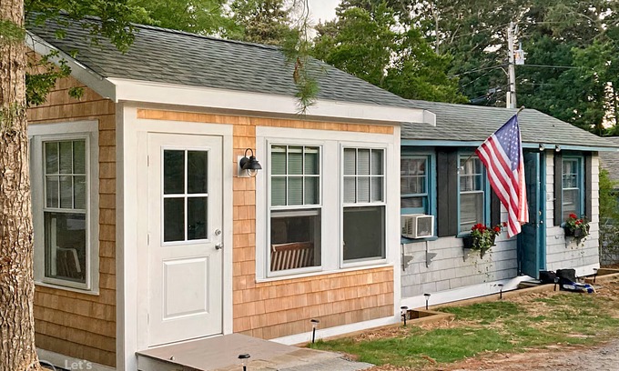 An old-fashion Cape vacation set in a secluded village of quaint, privately owned cottages on 4 acres of pine forest located on White Pond. This true Cape cottage is ideal for a couple or a small family. It has a complete kitchen/ living area with a pull out sofa bed, one bathroom, one bedroom with 2 twin beds, a large sunroom, outdoor shower, and an outdoor seating area. It's complete with cable TV, streaming TV, DVD and free wifi.