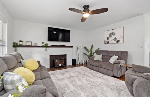 Newly remodeled 3 bedroom 1 bath with heated floors in kitchen. New Kitchen aide appliances and new washer / dryer. Spacious backyard with gazebo and fire pit! Kitchen and bathrooms are both stocked with essentials. Only 5-10 minutes from shopping, restaurants, and entertainment! Please note: Property damage coverage is required! Cost is $59. Pets are accepted upon approval. Please message us prior to booking if you will be traveling with a pet.