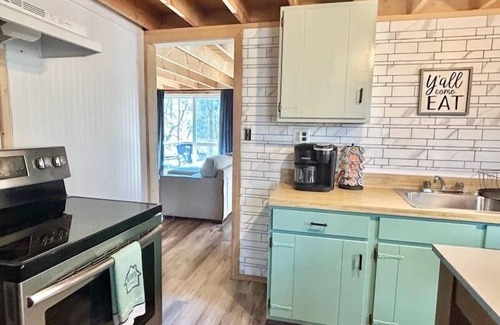 The neighborhood is super quiet and such a wonderful place to get away to. The house is located right in front of the creek that you can fish, kayak, let your dog swim and just enjoy the sound. The house is nice and cozy. The house has a hot tub for the relaxing time you want staring into the woods. Great place to sit on the deck and just be one with nature. Its fully equipped for a comfortable stay.