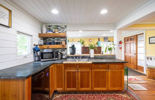 Experience a magical treehouse-like ambiance in summer, with the woods bordering the house. For kids, there's a dollhouse and trampoline. Barry Brooke and Baker River flow in the backyard.