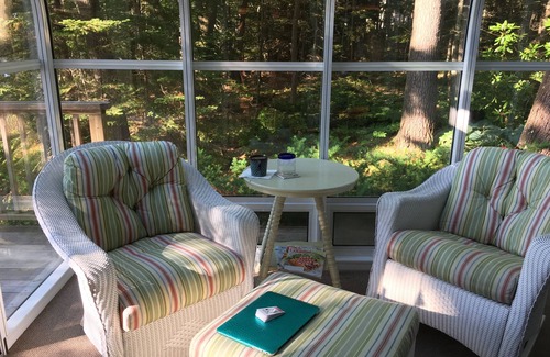 Welcome to Mid-Coast Maine! Our island house has woodsy privacy, a lovely water view and access to our dock on the Sheepscot River...all within a 10 minute drive from Route 1. The path to the dock is steep, but we use it regularly and are in our 60s and 70s. Inside our house, we have a queen bedroom on the first floor and a double bedroom and a twin bedroom upstairs. We can privately sleeps 5 but a 6th space is available on a comfortable twin pull-out couch in our upstairs loft. We keep our fully equipped kitchen with oven, stovetop, microwave, toaster, coffee maker stocked with cooking basics like: olive oil, vinegar, spices, flour, sugar as well as tea and coffee . We have two full bathrooms and a washer/dryer if you need it.
