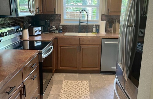 Just fully renovated, The Hogspitality House offers room for up to 6 registered guests. Inside, guests enjoy three bedrooms, one and a one half baths, a full kitchen with all stainless LG and KitchenAid appliances, and a comfortable living area with a 60' HDTV paired with YouTube TV, Netflix and Amazon Prime. We also blazing fast gigabit fiber internet service. Outside, guests will appreciate the large yard and big trees.