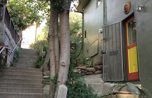 The private and quiet ground-level in-law apartment is located on a tree lined quiet cul de sac in Crocker Highlands, on the Pidmont side of Oakland, one of the most safe and secure neighborhood, a few minutes walk to downtown Oakland, Lakeshore shopping area, rose garden, parks/trails, movie theatre, shops, farmers market, cafés, restaurants, Trader Joe’s, Whole Foods and other markets. Access through a private entry leads to 2 bedrooms, living room, bathroom and eat-in kitchen. Downtown views. The apartment is furnished with TV, sofa, chairs, tables, bookcase, tables, linens, towels, window coverings, pots and pans. One bedroom has a queen bed and the other has a twin bed. The kitchen has a gas stove, refrigerator, dishwasher, dishes, pots, pans, table and chairs. All rooms overlook an untamed garden and offer lots of privacy. The garden has mature oaks, fruit trees and other vegetation. In unit washer and dryer are located across from the bathroom. Close access to highways 580 and 13 and public transport offer easy commuting. Utilities are included. No pets, no smoking, no vaping.