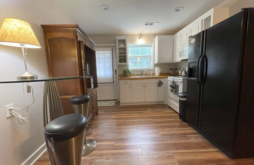Our cottages are conveniently located within walking distance of Old Town Suwanee, Suwanee TownCenter with its shops, restaurants, and amphitheater, as well as the Suwanee Greenway consisting of miles of winding trails for both biking and hiking. The main house on property is a historic 160yr old home. We have transformed the original cabinet shop into two 800sq ft apartment-style cottages perfect for you. Fur babies are welcome and have their own fenced in areas for each cottage. You will have all the comforts of home whether visiting for a week, a month, or 6-12. Outside sitting areas with Adirondack chairs and grills under porch coverings are your outside oasis. Designated parking spots are labeled for each cottage and washing machine and dryer located inside each living space... What more could you ask for? Located 10 minutes for Gas South Arena, 15 min from Lake Lanier, and just 30 minutes outside of Atlanta, we are convenient to all!