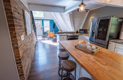This cabin is beautifully remodeled from a historic property built originally in 1969. Therefore there are some creaky floors on the second level and the HVAC is less traditional than a typical newer construction. However, it stays quite comfortable during any type of weather. There is also a somewhat steep lane coming in to the property. Should there be snow or ice this short area may be difficult to navigate in a rear wheel drive car. We will plow and ice melt but we do not control mother nature. However, we don't live far away and in the case of severe weather will be at your service to assist as needed. :-)