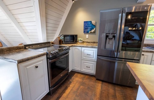 Owner managed with care and detail, this A-frame home offers three seating areas, a fully stocked kitchen with full size appliances including a dishwasher, two sleeping areas upstairs one being a loft area with queen size bed that is open to the level below plus a private bedroom featuring a queen bed, twin bed and a fun lofted play area we call "the cozy cave" perfectly sized for little adventurers. The cozy cave is a great place for the kids to enjoy while the adults get some quiet time. One full bath located on the main level plus a queen sleeper sofa. This sleeper isn't your grandmas sleeper sofa, you will get a sound nights sleep on this updated version with no metal brackets and an easy flip out design. Outside there is a deck with a dining table that seats four, lounge seating for 8 with a light and enjoy propane fire-table, and a large traditional fire pit for a more woodsy experience.