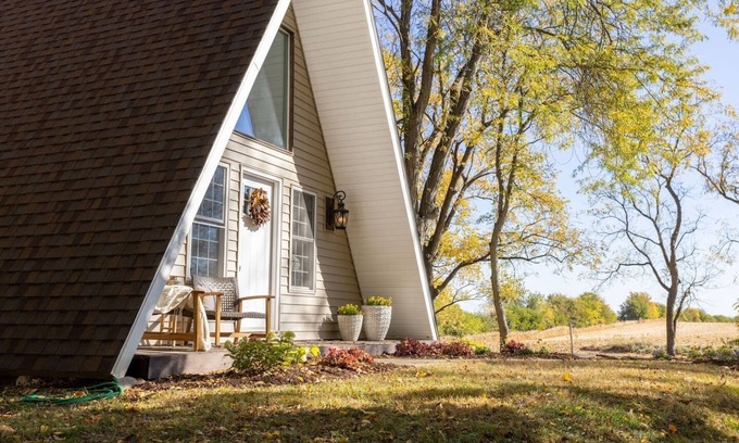 Our cabin is a short drive outside of Bloomington a few miles into the country. The last mile is a beautiful secluded tree lined road with a few neighboring houses. Once you turn at our well marked mailbox (look for the A-frame sign on the post with the white mailbox) you will meander through the woods for a short bit before you come up the lane to the A frame style cabin.