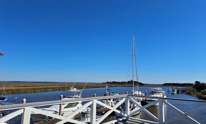Fully equipped kitchen, cozy dining area, comfortable living room, full bathroom, and a private front deck that opens up to the breathtaking Marshes of Glynn. You can even fish right from the porch!