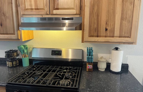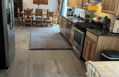 Very Secluded Last place on the street hidden in the trees! 4 bedroom 2 bath. Sleeps 8 comfortably or 12 people with 2 pullout queen couches to split with 3 families of 4. Only 12 miles to Historical Glenwood Hot Springs and Adventure Caverns and Harvey Gap State Park is located 6 miles for kayaking, paddle boarding and fishing. Includes 2 single kayaks and 1 double kayak included with rental. (must sign a release of liability). Inside there is a fully remodeled kitchen with upgraded appliances and ample seating. 2 separate dining tables which seats a total of 14 inside and a deck that seats 12 outside with a Outdoor George Foreman electric BBQ and plenty of dishware etc. to accommodate 12. The master bedroom has a king bed with a on suite bathroom with a separate garden tub and shower. On the opposite side of the master bedroom is another 3 bedrooms, one with a queen size bed and the other 2 bedrooms with bunk beds with Plenty of games and toys for all ages. Perfect for family or friend gatherings!