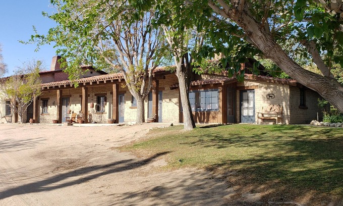 The Kemper Campbell Ranch, once a guest ranch hotel near Route 66, is ideal for family gatherings, reunions, company retreats, church groups, “friendcations” and all manner of friendly group get-aways. Our charming adobe guest rooms, situated in a surprising, beautiful, secluded, desert oasis in the Mojave River Valley, offer climate-controlled comfort and old-California charm. Once a get-away spot for Hollywood stars from Groucho Marx to John Wayne to Greta Garbo, the inspirational setting where Herman Mankiewicz wrote Citizen Kane, and still a working cattle ranch, the historic and lovingly renewed Kemper Campbell Ranch is available for just $2,500/night with a two-night minimum for any sized group of up to 48 people.