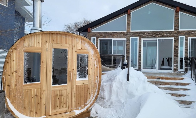 Rare Find! A gem lakefront house on a beautiful sandy beach with 8 person barrel sauna, wood fired, outdoor and indoor shower, water is safe and clean to swim, well water triple filtered for drinking, 40 mins from Winnipeg.