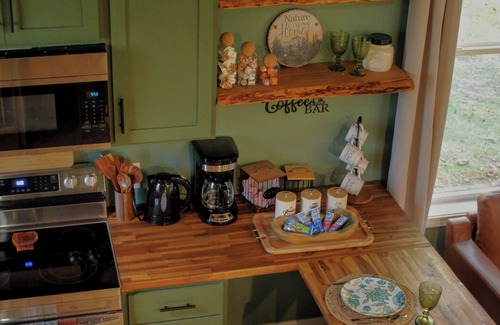 Be sure to take time to enjoy the outdoors while you are here! You have full access to the back pond for catch and release fishing (fishing gear available upon request), kayaking, or just enjoy the view in front of the fire or from the covered porch. Walk the path to the springs and enjoy a good book laying in the hammock and listen to the sounds of the spring and wildlife. If you're quiet in the morning hours, you may catch glimpses of our crane, turtles, deer and a lazy cat or two.