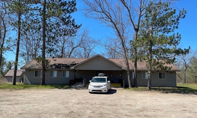 Situated on 16 acres of northern Michigan woods, our 8 bedroom/8 bath lodge is custom-built for groups & families to enjoy a private, fun-filled experience. Fully stocked serving kitchen, great room w/ pool table, big screen tv, satellite, internet, wet bar and seating for all. Outside you'll find volleyball nets, horse shoe pits, bon fire pit, patio w/ chairs, bbq grills and access to groomed trails for snow mobiling or hiking.