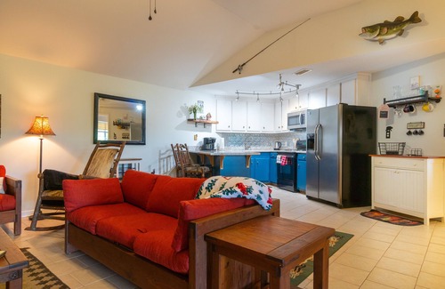 Gather together by the wood-burning stove in the cooler months while sharing in food preparations in the well-equipped kitchen. Fiber internet for all your devices and a streaming TV to watch a game, or listen to your favorite tunes. In warmer months enjoy the coolness of the cabin with the sunny days just outside the door.