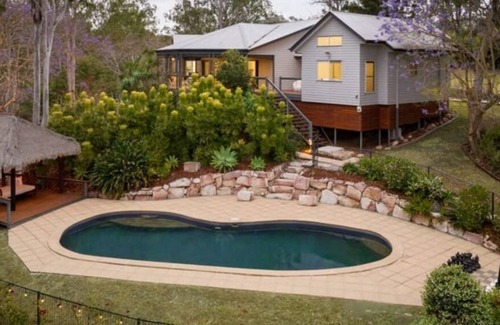 Set on almost 4 acres, Hideaway@Brookfield is located in Brookfield's most exclusive pocket. Insanely private yet only 5 minutes to Kenmore, you will drive along a private winding driveway to arrive at the property. Acreage property boosts of a full size Tennis Court (you will need to bring your own equipment), a large tropical resort pool, cabana and many outdoor hangout spaces. The house has 4 bedroom, 3 bathrooms, and two living areas and open plan kitchen.