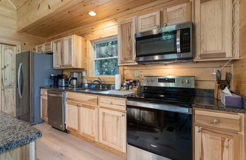 New cabin in Cedar Mountain, very quiet and private. Enjoy the natural surroundings, the wildlife and the hot tub. Expansive decking and covered front porch allow guests to unwind totally. This new cabin features one bedroom upstairs and one downstairs, each with their own bathroom. Linens provided, professionally managed. Hot tub on deck. Soaring ceilings and lots of windows give this cabin the right look and feel that you want in a vacation rental cabin in Cedar Mountain. The furniture is high quality as are the kitchen appliances and counters. The climate controls give you the ability to set the temperature separately for the main level and the upstairs if needed. Very efficient central heating and cooling system will keep you comfortable. Washer and dryer with starter soaps for your convienience.