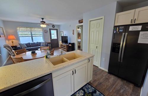 The home is fully equipped and offers a dock, 2 Kayaks, firepit, charcoal grill, generator for unfortunate power outages.