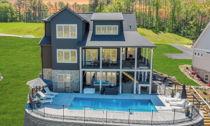 - Sunset Ridge, Lakefront NEW Luxury w/7-Bedrooms + Heated Salt Pool, Covered Decks, Hot Tub & Dock!
