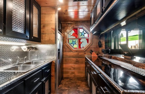 Perfect for a group of four, our retreat offers a unique blend of comfort and nostalgia. Immerse yourself in Americana decor while enjoying modern amenities. Take a dip in your own private outdoor pool. Unwind on the porch, sipping a drink and soaking in the hot tub. With a prime location, you'll have easy access to local attractions. Experience the best of both worlds in our inviting cabin, where relaxation and adventure await. Brought to you by Buckhead Cabin Rentals.