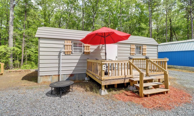 Pack your bags for an outdoorsy escape at this cheery Higden vacation rental. This single-story studio cottage offers a Smart TV, a private deck, and access to shared outdoor amenities like a fire pit, barbecue area, basketball court, and volleyball court. Fire up the grill, gather around the fire pit, or shoot hoops, then nestle in with your favorite movie on the Smart TV. Spend the day at Greers Ferry Lake, hit the links of Indian Hills Golf Course, or hike to Bridal Veil Falls.