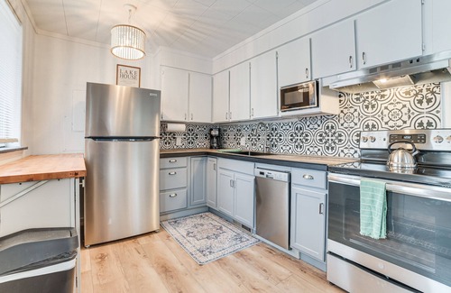 KITCHEN: Dishwasher, stove/oven, refrigerator, microwave, coffee maker, cooking basics, blender, dishware + flatware, toaster, toaster oven, high chair, trash bags + paper towels, complimentary spices