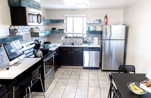 We provide a fully stocked kitchen in case you decide you want to stay in and cook. The entry door has a smart lock so that we can set your access code before you arrive. Please give me an estimated time window to make sure your code is set before you arrive.