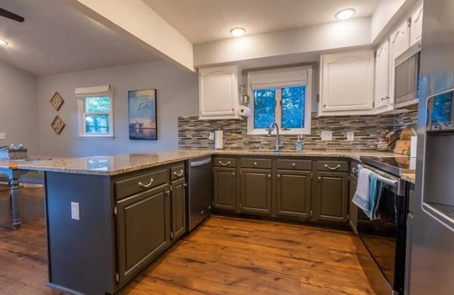 Relax with family and friends at this lake front home located in an upscale private neighborhood. Unwind and enjoy the tranquil water view and peaceful surroundings from the large outdoor porch. The secluded cove provides time for fun in the sun while swimming, paddle boarding, kayaking or laying out. Details and amenities have been considered including comfortable luxury linens, plush towels, coffee bar and more. Take time for yourself and make yourself at home at Tranquility Cove.