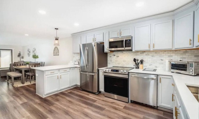 Welcome to our condo! Just steps from the lake, completely remodeled, fully custom condo on 2 floors! Walking distance to many attractions and just steps from your private beach on Lake Delton. Private boat slip available!