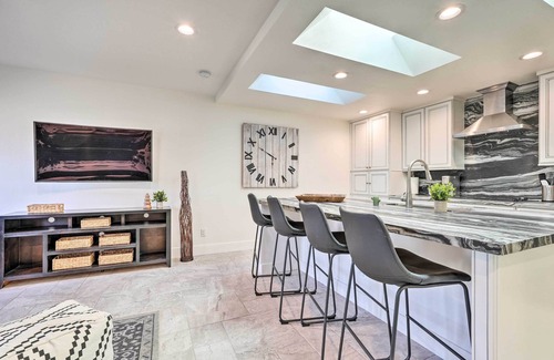 With brand-new fixtures, an open-concept flow, and a sunny outdoor oasis, this Scottsdale vacation rental is sure to please! The 1-bedroom, 1-bathroom home is perfect for a romantic getaway or trip with pals and blends top-notch comforts with a luxurious charm. Soak up the sun, take a dip in the pool, and host a happy hour around the fire pit. For more fun, play a game of ping pong or grill up a delicious feast. Must-visit spots like Old Town and Phoenix Mountain Preserve are also nearby.