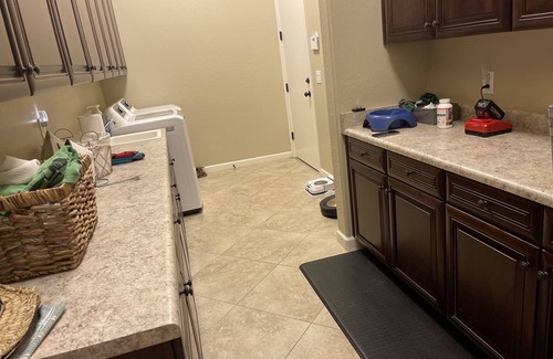Inside is a high end kitchen with Decor appliances, spacious living areas, Dinning table for 12 and games room with shuffle board table. 4 car garage with 2 spaces available for Vrbo.