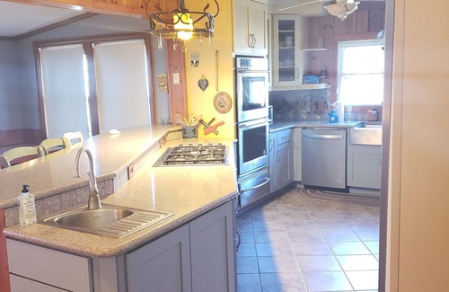 Modern Amenities: Enjoy the open gourmet kitchen equipped with fresh tapped spring water, perfect for catering your wedding festivities or hosting intimate gatherings.