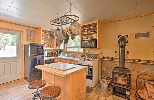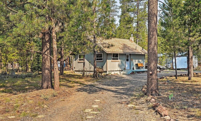 Located just 30 miles outside of Bend is this quaint and cozy La Pine vacation rental, ideal for fly fishermen and outdoor enthusiasts! With 1 bedroom, 1 bath, a furnished deck, and a wood-burning stove, this cabin has space to relax in all 4 seasons. Enjoy your coffee on the back deck or take advantage of the quiet and get some work done.