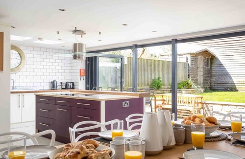 As you enter into the property, the welcoming snug room greets you on arrival, where you can look forward to cosying up on one of the armchairs whilst delving into the pages of a compelling novel, for some peace and quiet. Moving through the property, you will find the beautiful sitting room, with an eye-catching Cotswolds stone feature wall; relax in here of an evening with your loved ones as the woodburning stove crackles away in the background as you watch your favourite show on the Smart TV. The chef of the group will have no problem finding their way around the contemporary kitchen/diner, that contains all the appliances required to cook up a delicious meal, with a centre stage island sat in the middle with a five-ring induction hob. The underfloor heating will keep you warm on a cold winter evening as you and your guests dine at the large wooden dining table and toast a glass to the beginning of your holiday. A staircase in the snug with a sweet rope banister and an attractive exposed Cotswold stone wall leads you up to the first-floor, where you will find three homely bedrooms to lay your head for the night, two of which contain a king-size bed and the other contains a super-king-size bed that is zip/link and can be made up to twin beds on request. If you fancy a relaxing soak before bed, head to the bathroom where you can indulge amongst the bubbles in the wonderful freestanding bath. A second set of steep stairs with a rope banister lead up to the second-floor, where you are immediately greeted by a spacious landing area with two armchairs and a Roberts radio. Here, you will find the spacious master bedroom in the eaves, with a super-king-size bed, which share the floor with a shower room with a walk-in shower. In the morning, head downstairs to make you and your guests a warming mug of coffee using the Nespresso coffee machine, and head outside through the stunning bi-fold door to listen to the morning bird songs and catch the sunrise. A decking area with an outdoor table set provides the perfect space for alfresco dining, and there is even a charcoal barbecue for you to make use of later in the afternoon. A lovely lawn area gives your furry friend a space to stretch their legs in the morning, before you all get ready to head out for the day. There is something for everyone in Milton-under-Wychwood, so make High Ridge your base for a fun-filled yet relaxing holiday.