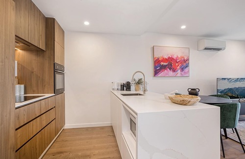 This stylish apartment is metres from restaurants, bars, cafes, Moonee Ponds Central Shopping Centre and Moonee Ponds Station. It’s also only a 25-minute train from the Melbourne CBD and a short drive from Moonee Valley Racecourse and Flemington Racecourse. The apartment has boutique furnishings in its living room and bedroom, which overlook the neighbourhood. It also has a furnished balcony and designer kitchen. Along with secure parking, the complex has a pool, sauna, gym and barbecue terrace.