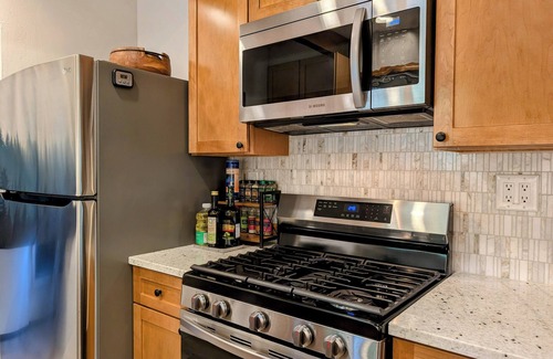 - Stocked with utensils, cookware, and dishes for home-cooked meals.