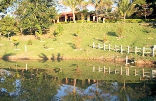 Large house of high standard all veranda, living room with 03 environments, fireplace, toilet and full kitchen, recreation area with: swimming pool, kiosk, barbecue, pizza oven, wood stove, lake, playground, soccer field.