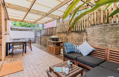The open-plan living space flows out to a private courtyard, complete with a BBQ for those lazy afternoons and warm evening dinners. The fully stocked kitchen has everything you need to whip up a feast or a simple snack after a day at the beach. You’ll also have the convenience of 2 modern bathrooms and a laundry with a washing machine, making extended stays easy and comfortable.