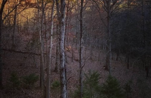 The cabin sits on 4 acres of wooded hillside grounds frequented by all forms of wildlife. It’s not uncommon to wake up to deer peering through the bedroom window or enjoying a midday snack among the lush greenery.