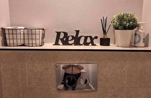 ✨ Lounge / Living Room: Step into the spacious and modern living area - it's your chill-out zone. You've got a flat screen TV with Netflix for those movie nights, lots of cushy pillows and a warm ambiance with thoughtful touches that'll make you feel right at home. Oh, and of course, there's free super-fast Wi-Fi for those remote working days with our large multi-purpose table.