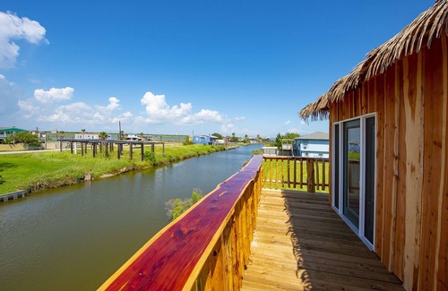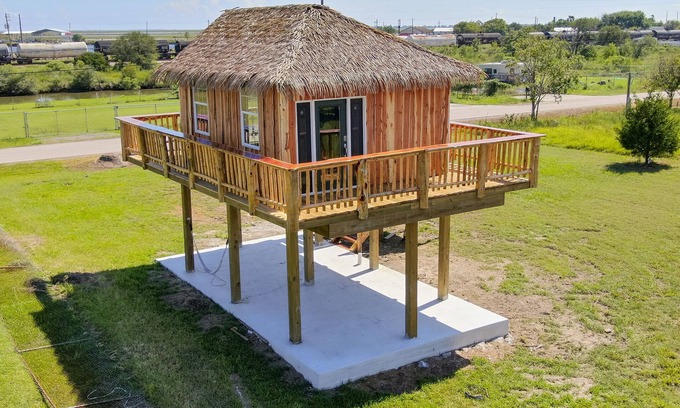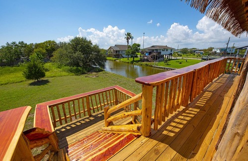 Read this ENTIRE listing, rules & etc. 12 min from Galveston, 5 min from I45. Private access to canal and lake. OFF GRID Palapa. Great for kayaking, standup paddle board, fishing or enjoying the ocean breeze. No electricity but solar light. No Boat access. No smoking/fire of any kind w in 20ft. No Rv hookups. OFF GRID Palapa. There's a private bath with a basic shower. No hot water. Child sup, single kayak and one tandem. Pet friendly. Two adult cots and one child cot. Bring your own amenities and supplies. JUST AS PICTURED.